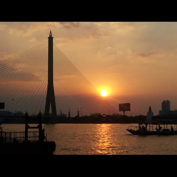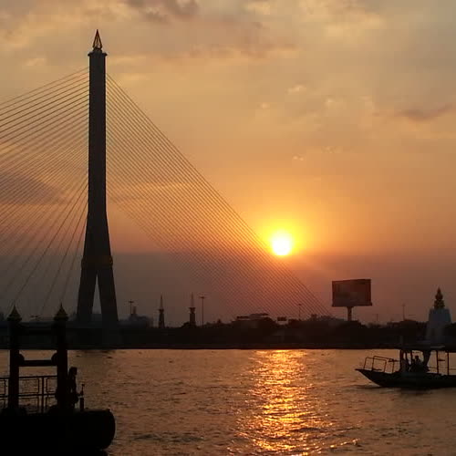 | คำอธิบาย : ทิวทัศน์ของแม่น้ำเจ้าพระยา สะพานพระราม 8 แสงพระอาทิตย์ยามค่ำ |