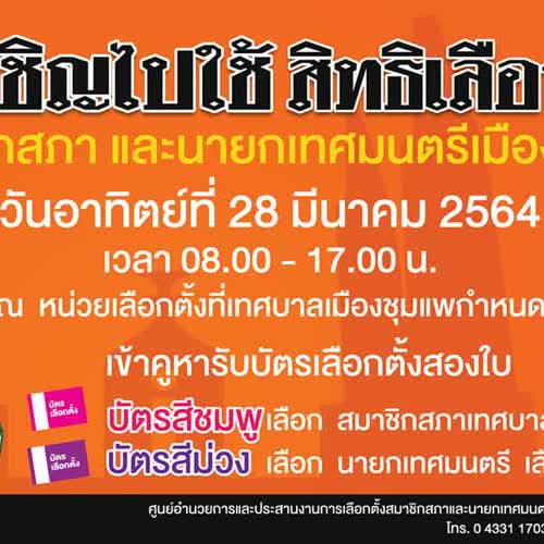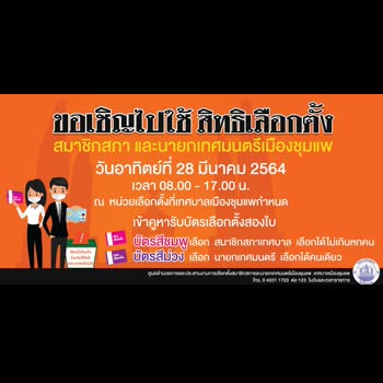 | ชื่อเรื่อง : การเลือกตั้งสมาชิกสภาเทศบาลและนายกเทศมนตรีเมืองชุมแพ พ.ศ. 2564 |