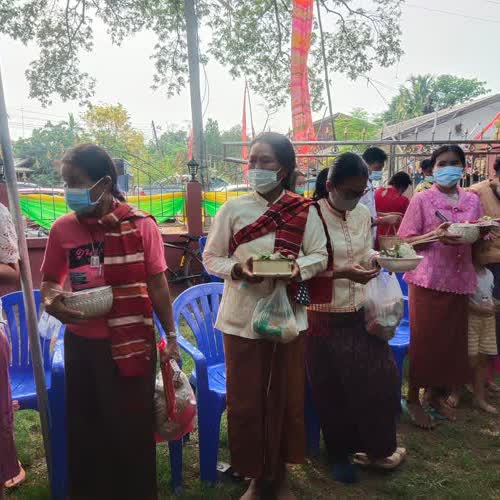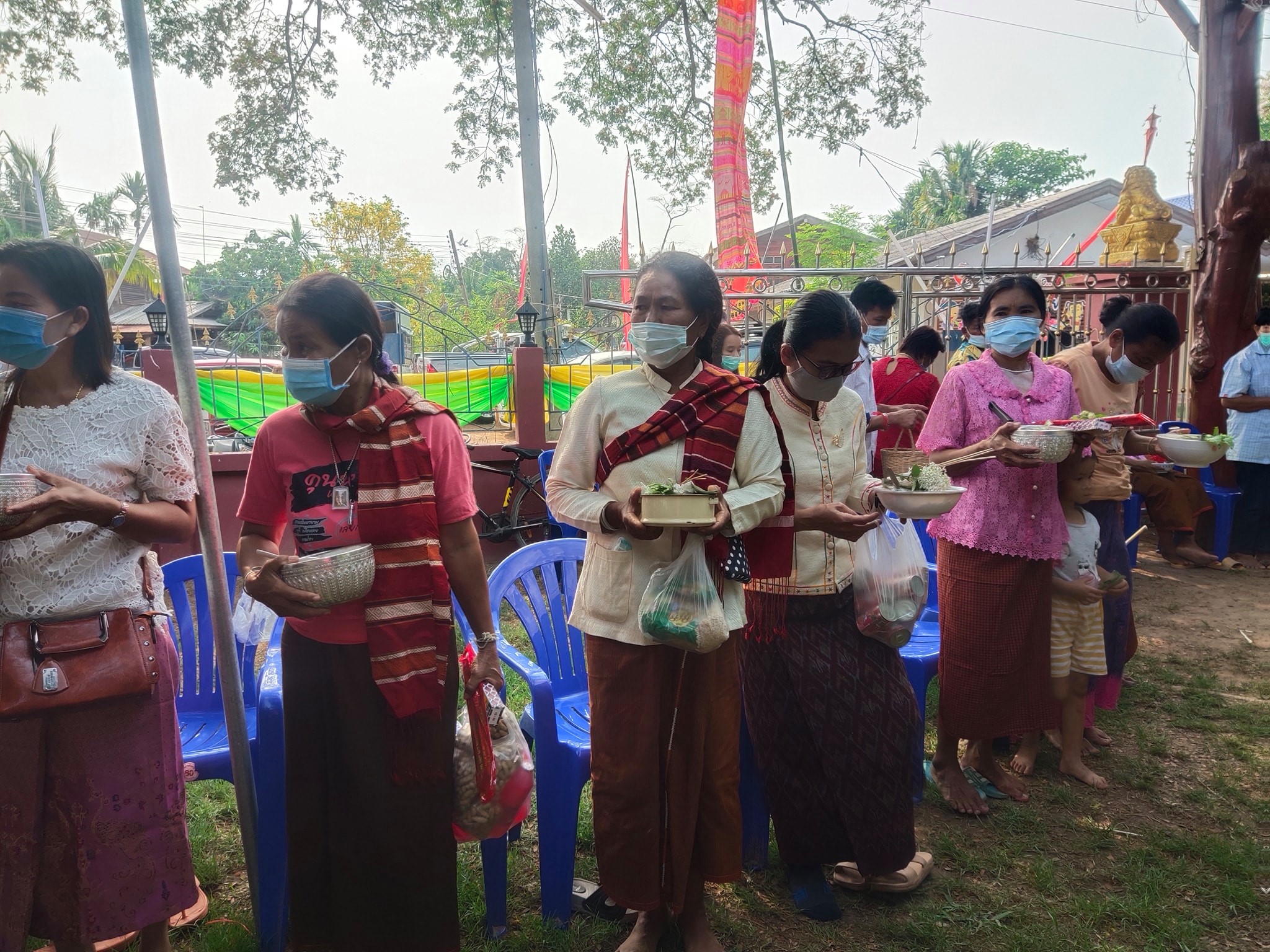 | คำอธิบาย : ตักบาตรข้าวสารอาหารแห้ง ณ วิหารหลวงพ่อพุทธบดินทร ปิ่นประภาทวาราวดีศรีสะเกษ บ้านสนาย ตำบลพิมาย อำเภอปรางค์กู่ จังหวัดศรีสะเกษ วันที่ 13 เมษายน 2564 |