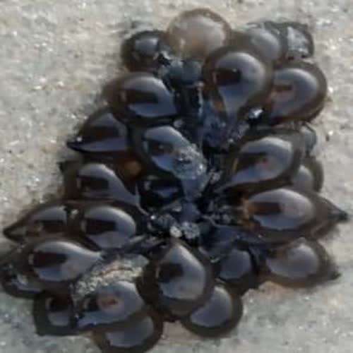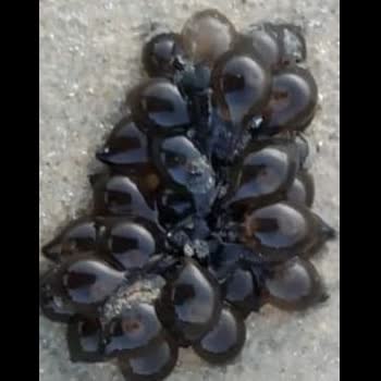 | คำอธิบาย : ไข่ปลาหมึก จากคำบอกเล่าของชาวประมงพื้นบ้านชายฝั่งอ่าวไทย บอกว่ามันคือ "ไข่หมึกกะตอย" หมึกกะตอย ?หมึกกะตอย คือ ปลาหมึกตัวเล็กๆที่พบได้ทั้งในอ่าวไทย และทะเลอันดามัน หมึกชนิดนี้มีขนาดเล็ก ลำตัวสั้น ส่วนท้ายเรียว ครีบเป็นรูปสี่เหลี่ยมขนมเปียกปูน มีกระดองเป็นแผ่นใสๆ สีขาวอมเขียว มีจุดสีแดงเข้มกระจายอยู่รอบตัว มีหนวด และครีบ ชาวประมงมักนำมาทำปลาหมึกแห้ง แต่ด้วยตัวขนาดเล็ก ก็สามารถนำมาสร้างสรรค์เป็นรายการอาหารที่แปลกตาได้ เช่น หมึกจุกเหนียว(ยัดไส้) และหมึกต้มน้ำดำ อาหารพื้นบ้านที่พบเห็นได้ไม่บ่อยนักCr...ภาพ จากแม่แดง จงรัก |