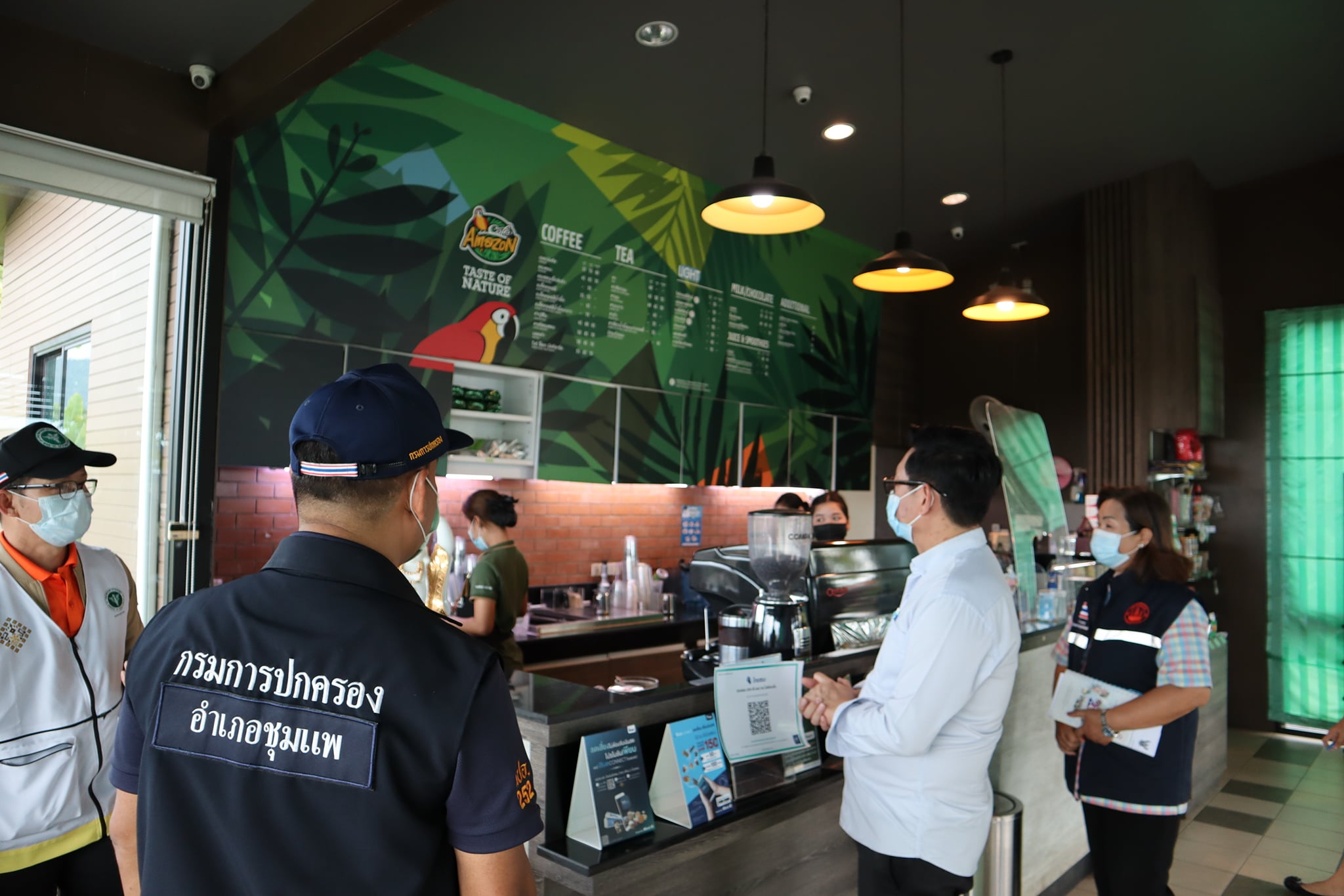 | คำอธิบาย : นางดัชนี ทองลาด ผู้อำนวยการกองสาธารณสุขและสิ่งแวดล้อม เทศบาลเมืองชุมแพ ได้รับมอบหมายจาก นายณัฐภูมิ นนทสิริกุล ปลัดเทศบาลเมืองชุมแพ ปฏิบัติหน้าที่นายกเทศมนตรีเมืองชุมแพ ออกตรวจสถานประกอบการในพื้นที่ ให้ปฏิบัติตามมาตรการเฝ้าระวังป้องกันและควบคุมโรคติดต่อเชื้อไวรัสโคโรนา 2019 (COVID-19) ตามประกาศของจังหวัดขอนแก่น และกระทรวงมหาดไทยกำหนด โดยวันนี้ได้ออกตรวจร่วมกับ หัวหน้าส่วนราชการทุกภาคส่วนในเขตพื้นที่อำเภอชุมแพ |