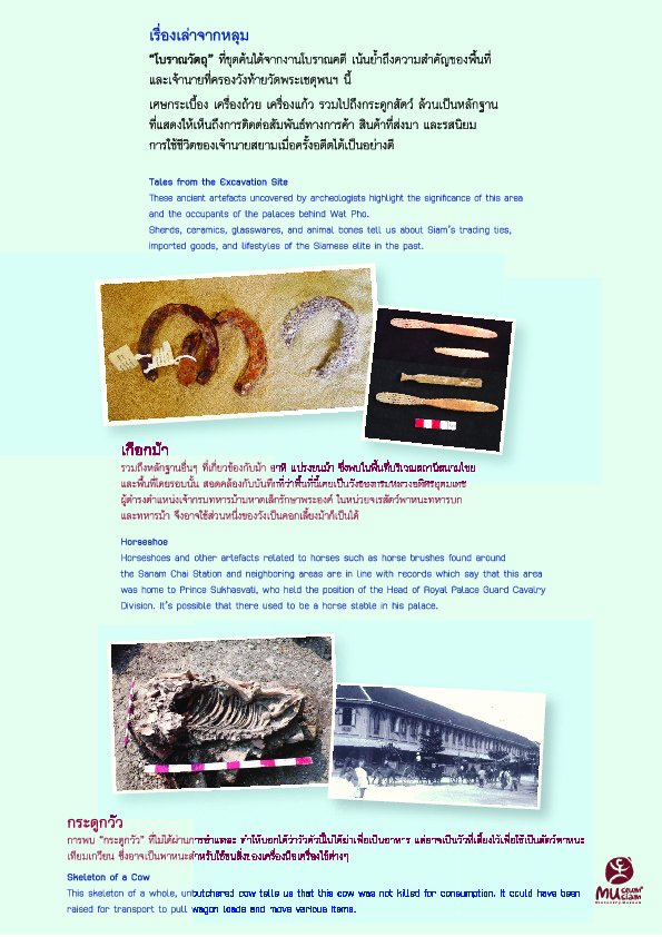 | คำสำคัญ : โบราณวัตถุ, นิทรรศการใต้ดิน, ป้อมวิไชยเยนทร์, พิพิธภัณฑ์ใต้ดิน, มิวเซียมสยาม, Bangkok underground, การขุดค้น, วังท้ายวัดโพธิ์, พิพิธภัณฑ์, หลุมขุดค้นโบราณคดี, ภูมิปัญญาโบราณ, เกือกม้า, การศึกษาอดีต, ป้อมบางกอก, ประวัติศาสตร์ร่วมสมัย, เศษกระเบื้องเซรามิค, เครื่องแก้ว, การติดต่อค้าขาย, เครื่องปั้นดินเผา, ใต้ดิน, โบราณสถาน, โบราณคดี, สถานีสนามไชย, เจ้านายสยาม, สถานีรถไฟฟ้า, ช่างหอยมุก, ประวัติศาสตร์กรุงเทพฯ, กรุงเทพฯ, แหล่งเรียนรู้, การศึกษาประวัติศาสตร์, ย่านท่าเตียน, วังท้ายวัดพระเชตุพน, ประวัติศาสตร์ชุมชน, พื้นที่เมืองเก่า, หลักฐานชั้นต้น, ประวัติศาสตร์พื้นที่, วังช่างมุก, ภูมิปัญญาสถาปัตยกรรม, ท้องพระโรง, วังเจ้านาย, รัตนโกสินทร์, เครื่องเคลือบ, กระทรวงพาณิชย์, กระดูกสัตว์, วังท้ายวัด, สังคมไทย, ประวัติศาสตร์ไทย, เกาะรัตนโกสินทร์, ประวัติศาสตร์เมือง |