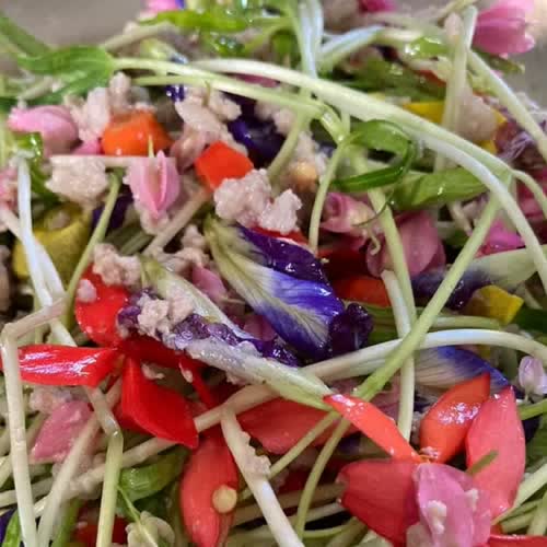 | คำสำคัญ : ยำดอกไม้, ดอกไม้, ผัดดอกไม้, ทำอาหาร, ดอกไม้จิ้มน้ำพริก |