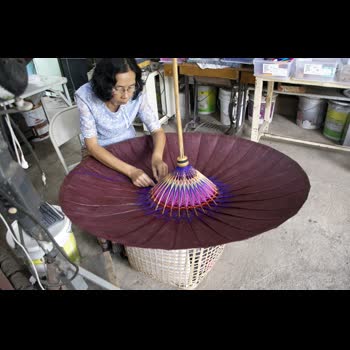 การทำร่มโบราณ บ้านมะกายยอน ได้รับใบอนุญาตภายใต้ ให้เผยแพร่-โดยต้องระบุที่มาแต่ห้ามดัดแปลงและห้ามใช้เพื่อการค้า 3.0 Thailand.