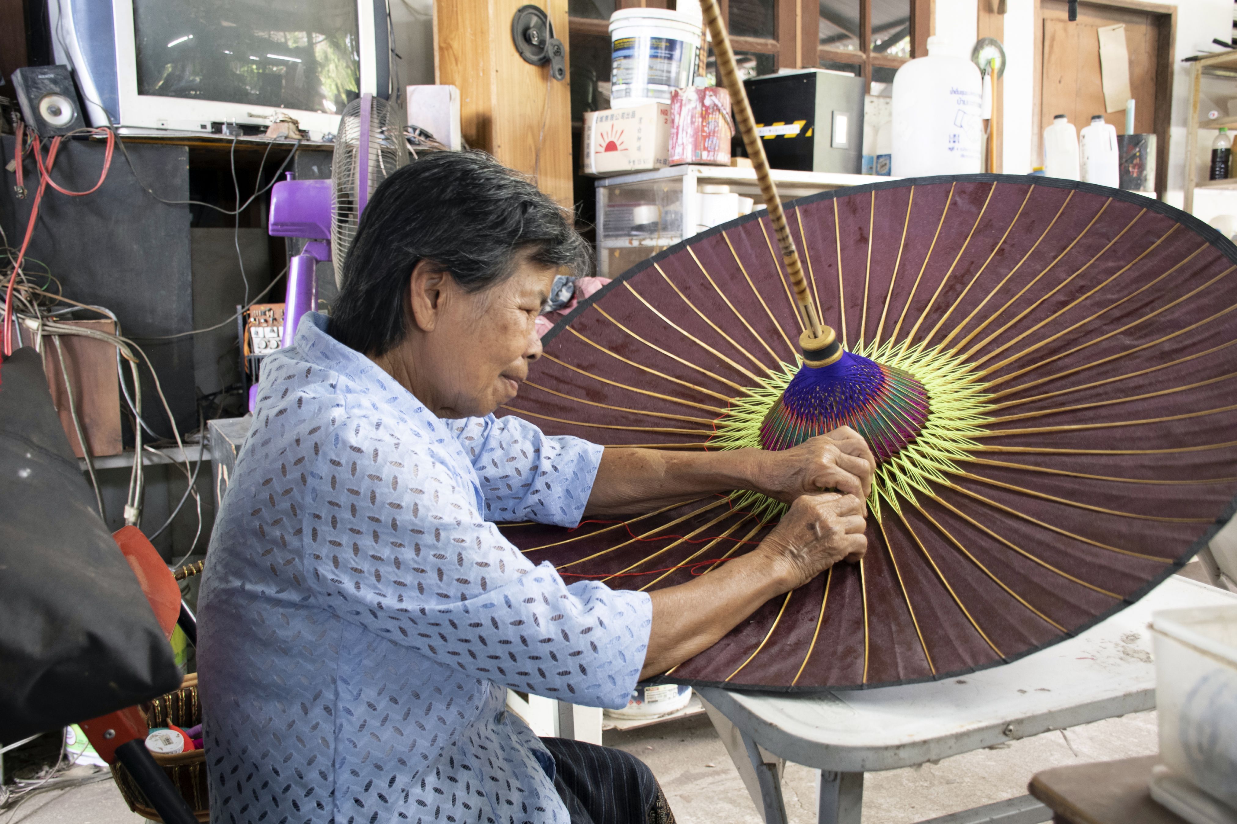 การทำร่มโบราณ บ้านมะกายยอน