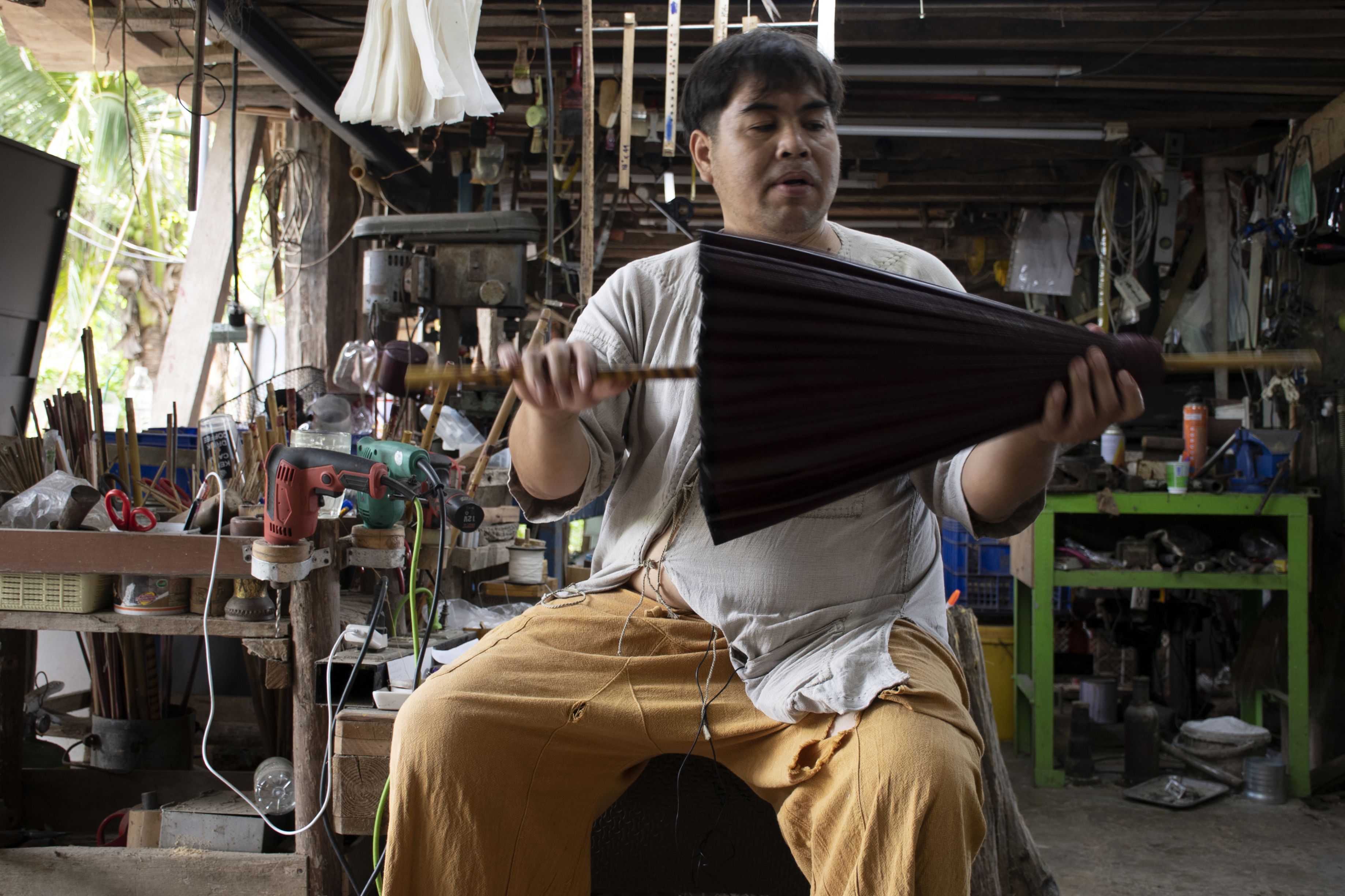 การทำร่มโบราณ บ้านมะกายยอน ได้รับใบอนุญาตภายใต้ ให้เผยแพร่-โดยต้องระบุที่มาแต่ห้ามดัดแปลงและห้ามใช้เพื่อการค้า 3.0 Thailand.