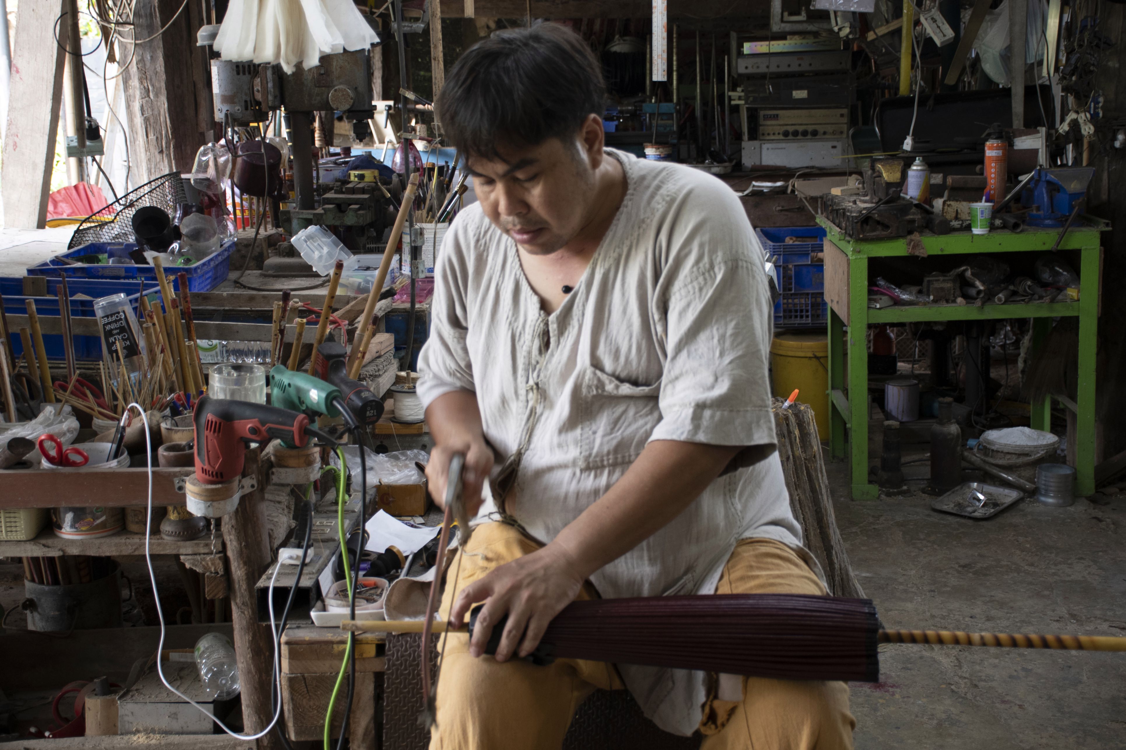 การทำร่มโบราณ บ้านมะกายยอน ได้รับใบอนุญาตภายใต้ ให้เผยแพร่-โดยต้องระบุที่มาแต่ห้ามดัดแปลงและห้ามใช้เพื่อการค้า 3.0 Thailand.