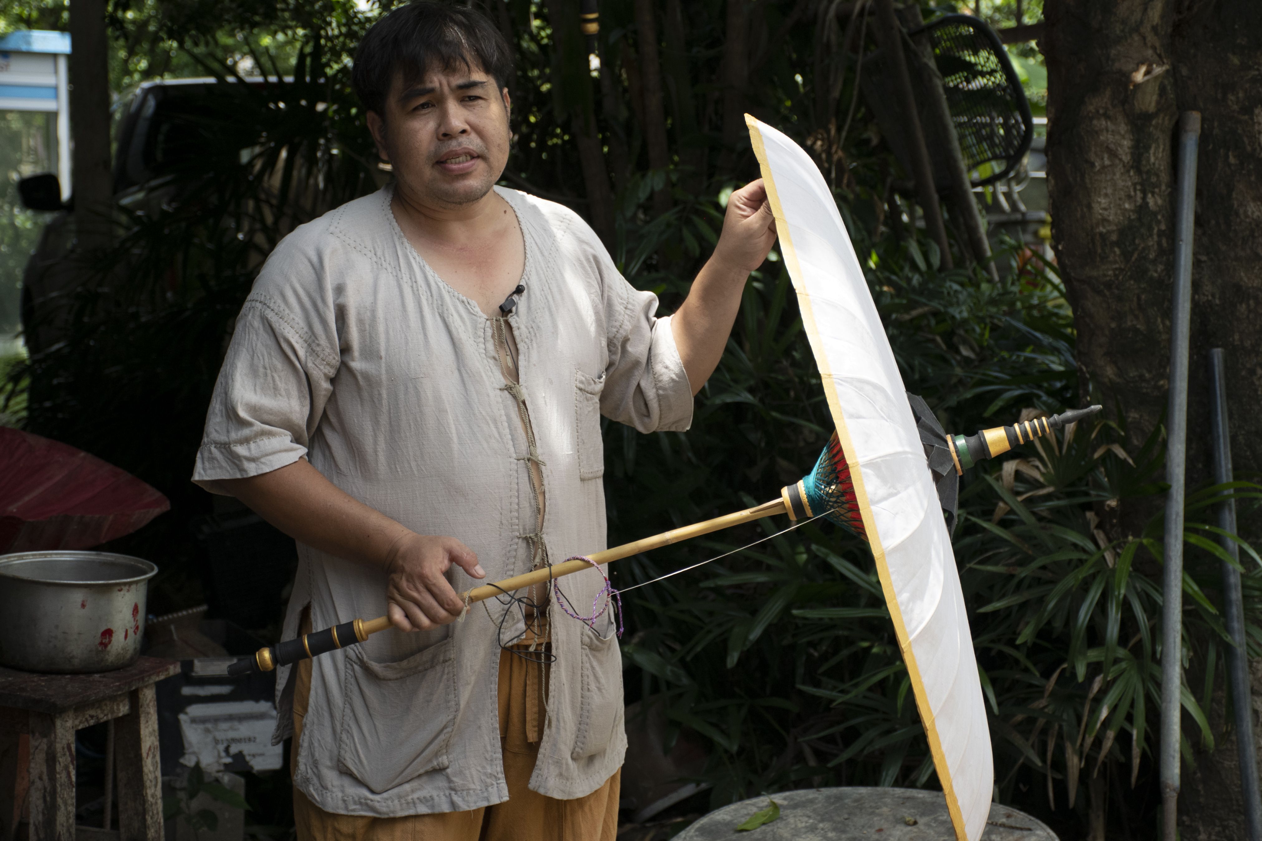 การทำร่มโบราณ บ้านมะกายยอน ได้รับใบอนุญาตภายใต้ ให้เผยแพร่-โดยต้องระบุที่มาแต่ห้ามดัดแปลงและห้ามใช้เพื่อการค้า 3.0 Thailand.
