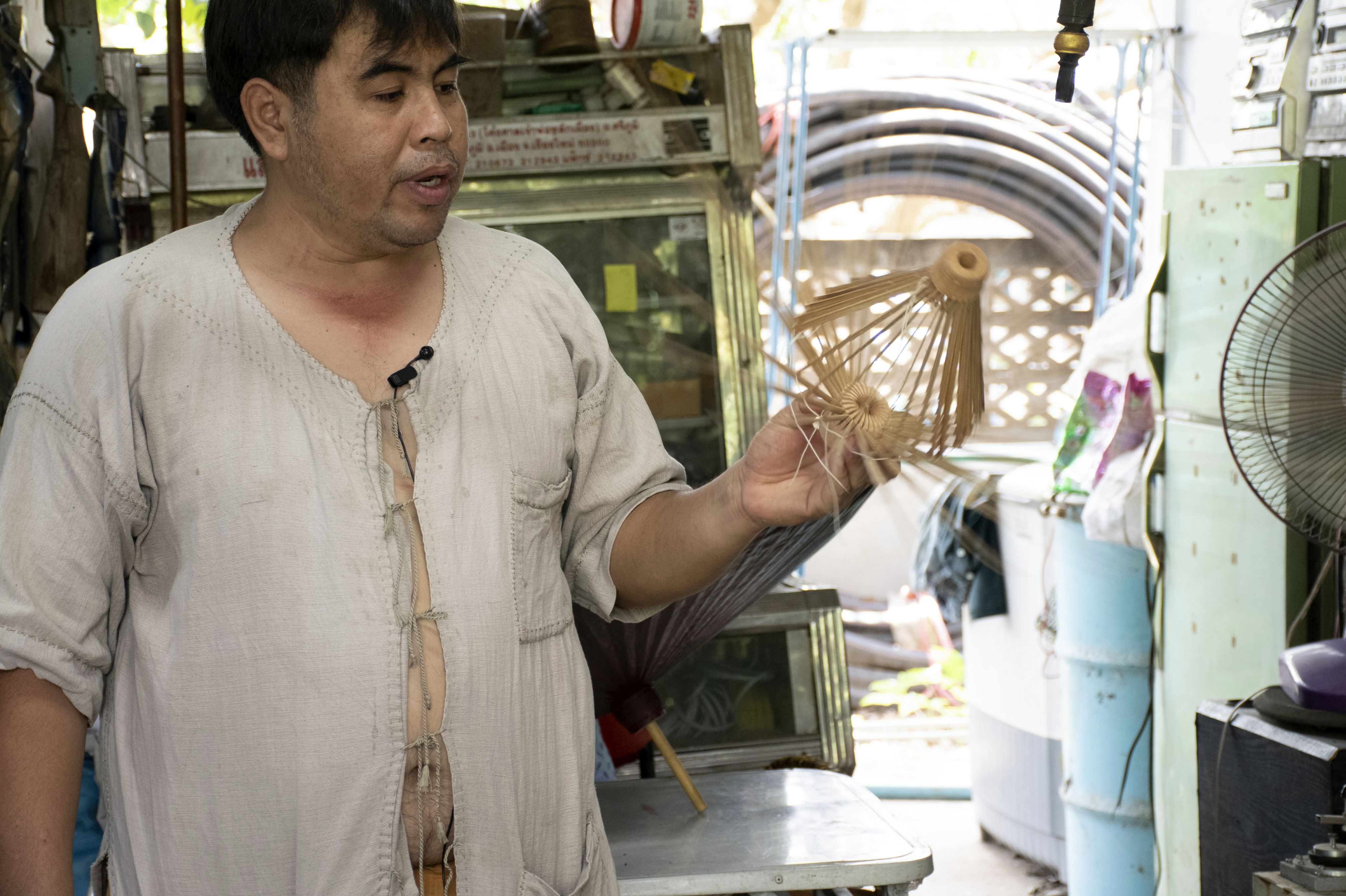 การทำร่มโบราณ บ้านมะกายยอน ได้รับใบอนุญาตภายใต้ ให้เผยแพร่-โดยต้องระบุที่มาแต่ห้ามดัดแปลงและห้ามใช้เพื่อการค้า 3.0 Thailand.