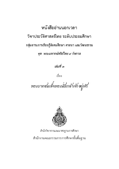 "หนังสืออ่านนอกเวลา วิชาประวัติศาสตร์ไทย ระดับประถมศึกษา ชุดพระมหากษัตริย์ไทย 9 รัชกาล เล่มที่ 3 เรื่อง พระบาทสมเด็จพระนั่งเกล้าเจ้าอยู่หัว".