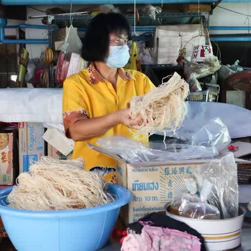 | คำอธิบาย : หมี่ซั่ว อาหารหลังในพิธีในงานประเพณีบุญกองข้าว |