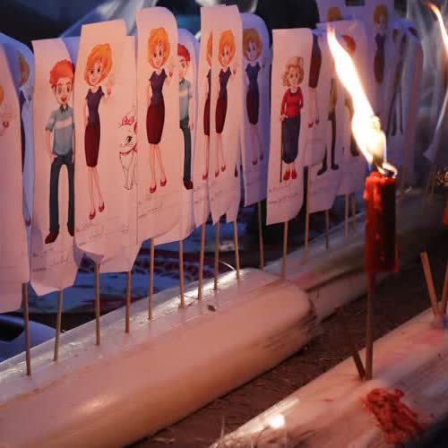| คำอธิบาย : ตุ๊กตาผู้ชาย-ตุ๊กตาผู้หญิง (ตุ๊กตาเสียกบาล) ในพิธีถือว่าเป็นสิ่งที่มีความจำเป็นอย่างยิ่ง เพราะตามโบราณถือว่าเป็นการนำมาซึ่งตัวแทนของตนเอง หรือญาติพี่น้อง เพื่อช่วยปัดเป่าโรคภัยไข้เจ็บ และอันตราย และให้ภูตผีปีศาจ ได้ทราบถึงคนในบ้านของแต่ละครอบครัวที่มาประกอบพิธีเซ่นไหว้ครั้งนี้ว่ามีใครบ้าน เพื่อที่พวกเขาเหล่านั้นจะได้ไม่มารังควานและให้ได้อยู่กันอย่างร่มเย็นเป็นสุข ในพิธีจะให้จัดตุ๊กตาชาย-หญิงตามจำนวนคนที่อาศัยอยู่ในครอบครัว *ตุ๊กตาสัตว์ ถือเป็นตัวแทนของสัตว์เลี้ยงภายในบ้าน ให้จัดเตรียมเท่ากับจำนวนของสัตว์เลี้ยงทีมีอยู่ สัตว์เลี้ยงในที่นี้หมายถึง หมา แมว เพราะอยู่ใกล้ชิดกับมนุษย์ |