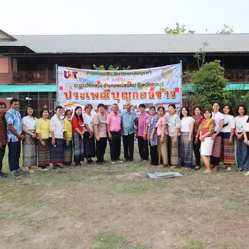 | คำอธิบาย : สำนักหอสมุดเป็นส่วนหนึ่งในการจัดทำประกอบพิธีในงานบุญกองข้าว |
