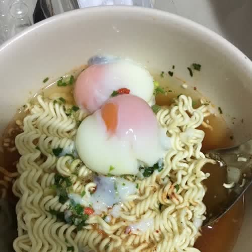 | คำอธิบาย : มาม่าไข่ต้มยางมะตูม |