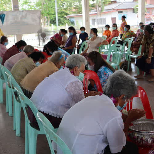 | คำอธิบาย : พิธีรดน้ำดำหัวเพื่อขอพรผู้เข้าร่วมกิจกรรมจากชมรมผู้สูงอายุวัดหลวง อำเภอพนัสนิคม จังหวัดชลบุรี เนื่องในเทศกาลวันสงกรานต์ |