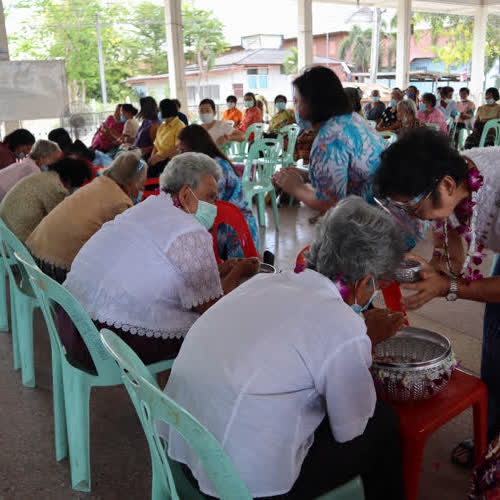 | คำอธิบาย : พิธีรดน้ำดำหัวเพื่อขอพรผู้เข้าร่วมกิจกรรมจากชมรมผู้สูงอายุวัดหลวง อำเภอพนัสนิคม จังหวัดชลบุรี เนื่องในเทศกาลวันสงกรานต์ |