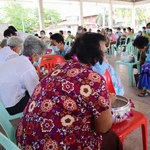 คำอธิบาย : พิธีรดน้ำดำหัวเพื่อขอพรผู้เข้าร่วมกิจกรรมจากชมรมผู้สูงอายุวัดหลวง อำเภอพนัสนิคม จังหวัดชลบุรี เนื่องในเทศกาลวันสงกรานต์ |