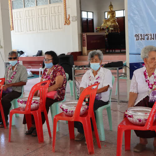| คำอธิบาย : พิธีรดขอพรจากผู้สูงอายุจากชมรมผู้สูงอายุตำบลวัดหลวง อำเภอพนัสนิคม จังหวัดชลบุรี เนื่องในเทศกาลวันสงกรานต์ |