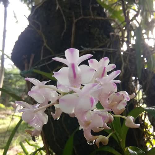 | คำอธิบาย : กุหลาบกระเป๋าปิด หรือ เอื้องกุหลาบกระเป๋าปิด เป็นกล้วยไม้ชนิดเดียวในสกุลกุหลาบที่ส่วนปลายปากแคบกว่าหู และทั้ง 2 ส่วนพับขึ้นมาปิดเส้าเกสรไว้ ช่อดอกสีขาวหรือสีขาวแกมม่วงอ่อน ดอกมีกลิ่นหอมมีชื่อวิทยาศาสตร์ว่า (Aerides odoratum Lour.) พบขึ้นอยู่ทุกภาคของประเทศไทย นอกจากนี้ยังพบในลาว กัมพูชา เวียดนาม มาเลเซีย อินโดนีเซีย ฟิลิปปินส์ พม่า อินเดีย เนปาล และภูฎาน |