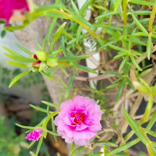 | คำอธิบาย : คุณนายตื่นสาย (อังกฤษ: Common Purslane, Verdolaga, Pigweed, Little Hogweed หรือ Pusley) เป็นพืชล้มลุก อวบน้ำในวงศ์ผักเบี้ย สามารถสูงได้ถึง 40 ซม.มีประมาณ 40 สายพันธุ์ในการปลูกเลี้ยงในปัจจุบัน มีการกระจายพันธุ์ในโลกเก่าตั้งแต่แอฟริกาเหนือถึงตะวันออกกลางและอนุทวีปอินเดียถึงเอเชียตะวันออกเฉียงใต้ และออสตราเลเซีย ดอกชนิดนี้บานเมื่อมีแสงแดดส่องทั่วถึง คุณนายตื่นสายมีชื่อพื้นเมืองอื่นอีกดังนี้: ผักตาโค้ง (นครราชสีมา) ผักเบี้ยดอกเหลือง (กลาง) ผักเบี้ยใหญ่ (กลาง) และ ผักอีหลู (เงี้ยว แม่ฮ่องสอน) คุณนายตื่นสายเป็นไม้คลุมดิน ลำต้นอวบน้ำสีม่วงแดง แผ่ทอดเลื้อยไปตามผิวดิน ใบเดี่ยว เรียงสลับ ใบรูปไข่กลับแกมรูปรี กว้าง 1-2 เซนติเมตร ยาว 2-3 เซนติเมตร ปลายใบแหลม โคนใบสอบ ขอบใบเรียบ แผ่นใบอวบน้ำ ผิวใบด้านบนสีเขียวอ่อนถึงเขียวเข้ม บางพันธุ์มีขอบใบขลิบสีแดงดอกสีขาว ชมพู แดง เหลือง ส้ม ออกเป็นดอกเดี่ยวตามซอกใบหรือปลายกิ่ง กลีบดอกชั้นเดียว บอบบาง ขอบกลีบดอกหยักเป็นคลื่น บานเมื่อได้รับแสงแดดตอนเช้า ดอกบานเต็มที่กว้าง 1-1.5 เซนติเมตร ผลแห้งแตก มีเมล็ดจำนวนมาก |