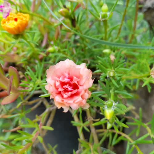 | คำอธิบาย : คุณนายตื่นสาย (อังกฤษ: Common Purslane, Verdolaga, Pigweed, Little Hogweed หรือ Pusley) เป็นพืชล้มลุก อวบน้ำในวงศ์ผักเบี้ย สามารถสูงได้ถึง 40 ซม.มีประมาณ 40 สายพันธุ์ในการปลูกเลี้ยงในปัจจุบัน มีการกระจายพันธุ์ในโลกเก่าตั้งแต่แอฟริกาเหนือถึงตะวันออกกลางและอนุทวีปอินเดียถึงเอเชียตะวันออกเฉียงใต้ และออสตราเลเซีย ดอกชนิดนี้บานเมื่อมีแสงแดดส่องทั่วถึง คุณนายตื่นสายมีชื่อพื้นเมืองอื่นอีกดังนี้: ผักตาโค้ง (นครราชสีมา) ผักเบี้ยดอกเหลือง (กลาง) ผักเบี้ยใหญ่ (กลาง) และ ผักอีหลู (เงี้ยว แม่ฮ่องสอน) คุณนายตื่นสายเป็นไม้คลุมดิน ลำต้นอวบน้ำสีม่วงแดง แผ่ทอดเลื้อยไปตามผิวดิน ใบเดี่ยว เรียงสลับ ใบรูปไข่กลับแกมรูปรี กว้าง 1-2 เซนติเมตร ยาว 2-3 เซนติเมตร ปลายใบแหลม โคนใบสอบ ขอบใบเรียบ แผ่นใบอวบน้ำ ผิวใบด้านบนสีเขียวอ่อนถึงเขียวเข้ม บางพันธุ์มีขอบใบขลิบสีแดงดอกสีขาว ชมพู แดง เหลือง ส้ม ออกเป็นดอกเดี่ยวตามซอกใบหรือปลายกิ่ง กลีบดอกชั้นเดียว บอบบาง ขอบกลีบดอกหยักเป็นคลื่น บานเมื่อได้รับแสงแดดตอนเช้า ดอกบานเต็มที่กว้าง 1-1.5 เซนติเมตร ผลแห้งแตก มีเมล็ดจำนวนมาก |