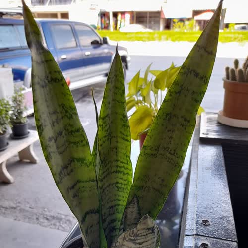 | คำอธิบาย : สกุลลิ้นมังกร (ชื่อวิทยาศาสตร์: Sansevieria เป็นสกุลของพืชใบประดับ มีถิ่นกำเนิดในภูมิประเทศเขตร้อนแห้งแล้ง นมังกรเป็นพรรณไม้ ที่มีลำต้นเป็นหัว หรือเหง้าอยู่ในดิน ลักษณะลำต้นเป็นข้อ ๆ ใบเกิดจากหัวที่โผล่ออมาพ้นดินเป็นกอ ใบยาวปลายแหลม แข็งเป็นมัน ขอบใบเรียบ โค้งงอเล็กน้อย ขอบใบมีสีเหลืองกลางใบสีเขียวอ่อน ประด้วยเส้นสีเขียวเข้ม ขนาดของใบกว้างปรมาณ 4-7 เซนติเมตร ยาวประมาณ 30-50 เซนติเมตร ก้านดอกประกอบด้วยกลุ่มดอกป็นชั้น ๆ ลักษณะดอกมีขนาดเล็ก ออเรียงกันเป็นแนวตามชั้นของก้านดอกดอกมีสีขาวมีกลีบประมาณ 5 กลีบ นาดดอกบานเต็มที่ 2 เซนติเมตร ลักษณะขนาดใบ และสีสัน จะแตกต่างกันไปตามชนิดพันธุ์ คนไทยโบราณเชื่อว่า บ้านใดปลูกต้นลิ้นมังกรไว้ประจำบ้าน จะช่วยป้องกันอันตรายจากภายนอกได้ เพราะลิ้นมังกร บางคนเรียกอีกชื่อหนึ่งว่าหอกพระอินทร์ ซึ่งเป็นอาวุธชนิดหนึ่งของพระอินทร์ ที่ใช้ในการต่อสู้และปกป้องศัตรูจากภายนอก ดังนั้นลิ้นมังกรจึงเป็นไม้ที่มีความศักดิ์สิทธิ์ เพราะเป็นไม้ที่มีความสำคัญของพระอินทร์ในสมัยพุทธกาล |