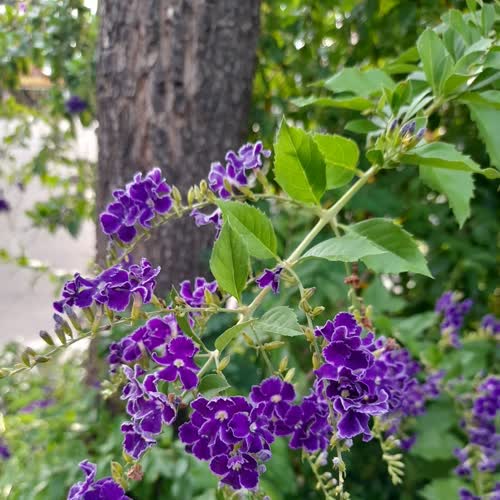 | คำอธิบาย : เทียนหยด (ชื่อวิทยาศาสตร์: Duranta repens L.; Duranta erecta L.; ชื่อสามัญ: Sky flower; Golden dew drop; Pigeon berry; Duranta; ชื่อวงศ์: VERBENACEAE) มีชื่อพื้นเมืองหลายชื่อ ได้แก่ เครือ (แพร่) ; พวงม่วง; ฟองสมุทร; เทียนไข (กรุงเทพฯ) ; สาวบ่อลด (เชียงใหม่)เป็นไม้พุ่มใบเป็นใบเดี่ยวรูปมนรีเรียว สอบไปทางปลาย ขอบใบเป็นหยักห่างๆออกดอกเป็นช่อห้อยตามปลายยอด ดอกมีสีม่วงมีกลีบดอก 5 กลีบ สามารถติดผลเป็นเม็ดกลมขนาดเล็กสีเหลืองคล้ายหยดเทียน ใช้ในการปลูกประดับทั่วไป เทียนหยดเป็นพืชที่มีพิษ โดย ผลสีส้มของเทียนหยด เป็นสารประกอบโปรตีนที่มีพิษ ไม่ควรรับประทาน หากรับประทานเข้าไปแล้วเคี้ยว อาจจะทำให้เสียชีวิตได้ (แต่ถ้าหากรับประทานเข้าไปแล้วไม่เคี้ยว จะไม่ก่อให้เกิดอันตราย) |
