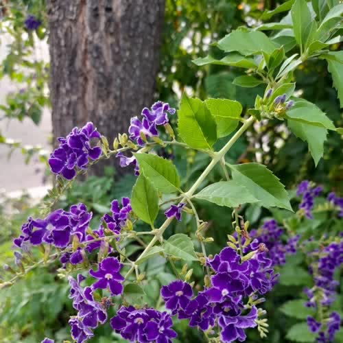 | คำอธิบาย : เทียนหยด (ชื่อวิทยาศาสตร์: Duranta repens L.; Duranta erecta L.; ชื่อสามัญ: Sky flower; Golden dew drop; Pigeon berry; Duranta; ชื่อวงศ์: VERBENACEAE) มีชื่อพื้นเมืองหลายชื่อ ได้แก่ เครือ (แพร่) ; พวงม่วง; ฟองสมุทร; เทียนไข (กรุงเทพฯ) ; สาวบ่อลด (เชียงใหม่)เป็นไม้พุ่มใบเป็นใบเดี่ยวรูปมนรีเรียว สอบไปทางปลาย ขอบใบเป็นหยักห่างๆออกดอกเป็นช่อห้อยตามปลายยอด ดอกมีสีม่วงมีกลีบดอก 5 กลีบ สามารถติดผลเป็นเม็ดกลมขนาดเล็กสีเหลืองคล้ายหยดเทียน ใช้ในการปลูกประดับทั่วไป เทียนหยดเป็นพืชที่มีพิษ โดย ผลสีส้มของเทียนหยด เป็นสารประกอบโปรตีนที่มีพิษ ไม่ควรรับประทาน หากรับประทานเข้าไปแล้วเคี้ยว อาจจะทำให้เสียชีวิตได้ (แต่ถ้าหากรับประทานเข้าไปแล้วไม่เคี้ยว จะไม่ก่อให้เกิดอันตราย) |