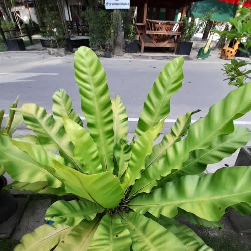 | คำอธิบาย : ข้าหลวงหลังลาย ชื่อวิทยาศาสตร์: Asplenium nidus L. ชื่อสามัญ: Bird’s nest fern ชื่ออื่น: เฟินข้าหลวงหลังลาย เฟินรังนก วงศ์: ASPLENIACEAE ลักษณะทางพฤกษศาสตร์ ต้น พืชจำพวกเฟิน เหง้าสั้นตั้งตรง มีรากจำนวนมาก เกล็ด รูปรีแกมรูปใบหอก สีน้ำตาลถึงน้ำตาลเข้ม ใบ เป็นใบเดี่ยวออกเวียนซ้อนกันรอบ ๆ ลำต้น ใบยาวรูปขอบขนาน ปลายแหลมคล้ายใบหอก สีเขียวอ่อน หนาและแข็งเป็นมัน ใบแก่เส้นใบเป็นสีดำ บริเวณขอบใบทั้งสองด้านจะมีลักษณะหยักโค้งเป็นคลื่นตั้งแต่โคนไปจนสุดปลา กลุ่มของอับสปอร์ เรียงตัวตามแนวเส้นใบที่ด้านหลัง เมื่อแก่เป็นสีน้ำตาลดำ มีถิ่นกำเนิดในแถบเขตร้อน ของทวีปเอเชีย ออสเตรเลีย การปลูกเลี้ยง: ดินร่วน ระบายน้ำได้ดี หรือดินที่มีอินทรียวัตถุสูง แดดร่มรำไร การขยายพันธุ์ เพาะสปอร์ การใช้ประโยชน์: ปลูกเป็นไม้ประดับตามสวน ไม้แขวน ไม้กระถาง และใช้เป็นพ่อแม่พันธุ์ในการผสมให้เกิดลูกผสม |