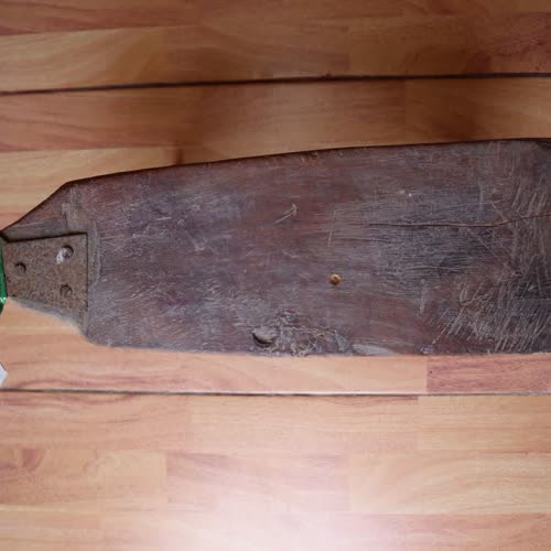 | คำอธิบาย : มีลักษณะทำมาจากเหล็ก ส่วนหัวทำด้วยเหล็กแบนเป็นซี่ฟัน มีฐานเป็นไม้สำหรับขูดมะพร้าวที่ยังไม่ได้กะเทาะเปลือกออก เดิมทีการขูดเนื้อมะพร้าวคั้นกะทิ จะใช้ช้อนทำจากกะลามะพร้าวขูดให้เป็นฝอย ต่อมาทำเป็นฟันซี่โดยรอบ บางแห่งใช้ซีกไม้ไผ่บากรอยเป็นซี่สำหรับขูดมะพร้าว จนกระทั่งเมื่อมีการใช้เหล็กมาทำของใช้ในครัวเรือน จึงได้ตีเหล็กแผ่นบางๆ ตัดรูปโค้งมน ใช้ตะไบถู ทำซี่ละเอียดปลายเหล็กคมเรียกว่า "ฟันกระต่าย" นำส่วนเหล็กขูดฟันกระต่ายนี้ไปประกบหรือเข้าเดือยกับรูปตัวสัตว์ที่เตรียมไว้จนเป็นกระต่ายขูดมะพร้าว |