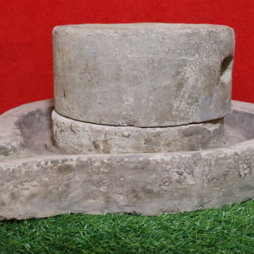 | คำอธิบาย : มีลักษณะ โม่ ประกอบด้วยตัวครกและฝาครก ตัวครกเป็นทรงกลมฐานเรียบมีแอ่งหรือคลองรอบๆ ให้น้ำแป้งไหลออกทางปากครกได้ ส่วนกลางเป็นหน้าตัดแซะร่องลึกเรียกว่า ฟันครกตรงกลางเป็นรูกลวงสำหรับใส่เดือยเป็นแกนหมุนฝาครกที่เรียกว่า ลูกบด ด้านบนมีรูสำหรับหยอดข้าว ด้านข้างมีมือจับสำหรับหมุน นิยมทำจากหินแกรนิตที่มีความแกร่งและน้ำหนักมากโม่หินที่ดีร่องฟันต้องลึกเพียงพอและที่สำคัญแผ่นหินด้านบนและล่างต้องทับกันสนิทจึงจะทำให้ได้เนื้อแป้งที่ละเอียด |