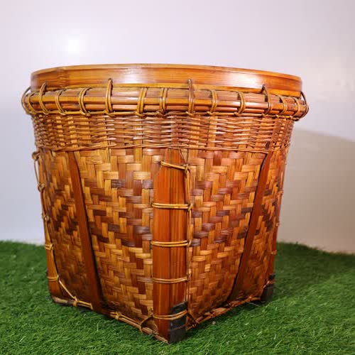 | คำอธิบาย : มีลักษณะทำจากไม้ไผ่หลาว แล้วนำมาสานเข้าด้วยกัน มีลักษณะคล้ายถังน้ำ ใช้โกยข้าวเปลือก |