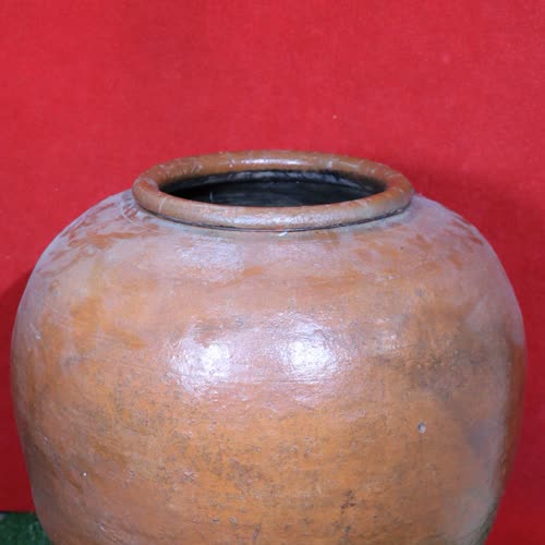 | คำอธิบาย : มีลักษณะทำจากดินเผา จะมีก้นมนกลม การวางจะต้องมีฐานรองรับเสมอ เช่น ใช้ชิ้นส่วนของขอบปากโอ่ง หรือนำฟางมามัดรวมแล้วม้วนให้เป็นวงกลม หรือการทำตีนให้โอ่ง การเผาโอ่ง จะนิยมเผาพอดินสุกแดง ไม่เผาแกร่ง เมื่อใส่น้ำแล้วจึงมีน้ำซึมบ้างเล็กน้อย การซึมของน้ำจะทำให้เกิดการระเหยของน้ำรอบๆ โอ่ง ช่วยถ่ายเทความร้อนออกจากโอ่ง ทำให้น้ำในโอ่งเย็นกว่าใส่ภาชนะอื่น |
