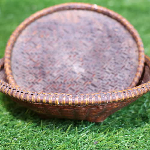 | คำอธิบาย : มีลักษณะเป็นไม้ไผ่สาน เป็นตะกร้าไว้ใส่ของจะมีฝาปิดไม่ให้ของด้านในหล่น หรือเอาไว้ใส่เงิน เวลาขายของที่ตลาด |