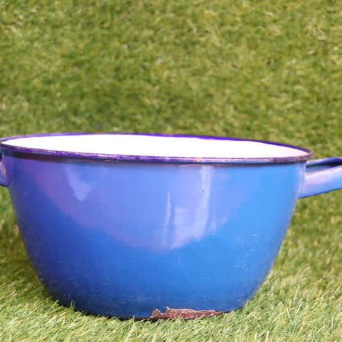 | คำอธิบาย : มีลักษณะเป็นหม้อเคลือบโบราณ 2 หู สีน้ำเงิน เหมาะสำหรับบรรจุอาหารหรือใส่น้ำมันทอด |