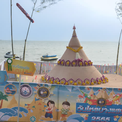 | คำอธิบาย : ประเพณีก่อพระทรายวันไหลบางแสน ประจำปี 2565 |