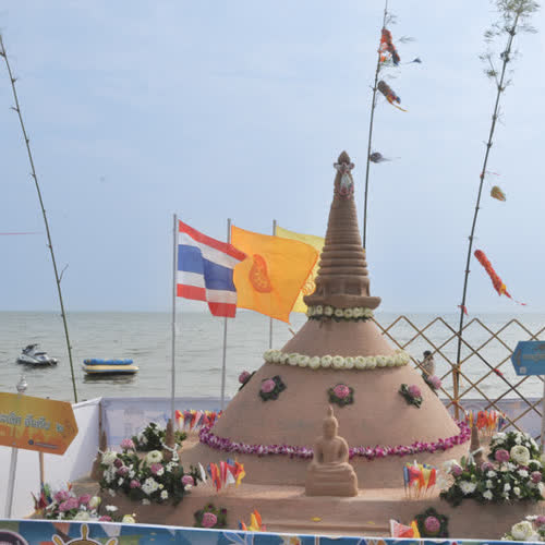 | คำสำคัญ : ประเพณีก่อพระทรายวันไหลบางแสน, ประเพณีวันไหลบางแสน, ชายหาดบางแสน, เจดีย์ทราย |