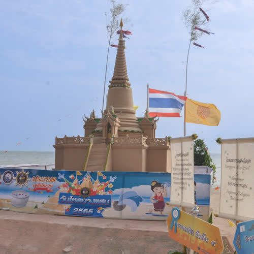 | คำอธิบาย : ประเพณีก่อพระทรายวันไหลบางแสน ประจำปี 2565 |