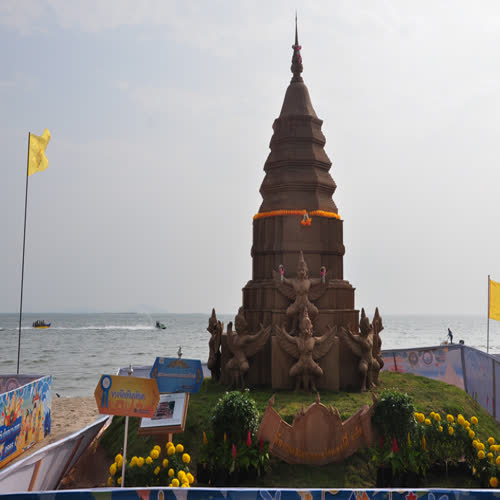 เจดีย์ทราย ประเพณีก่อพระทรายวันไหลบางแสน