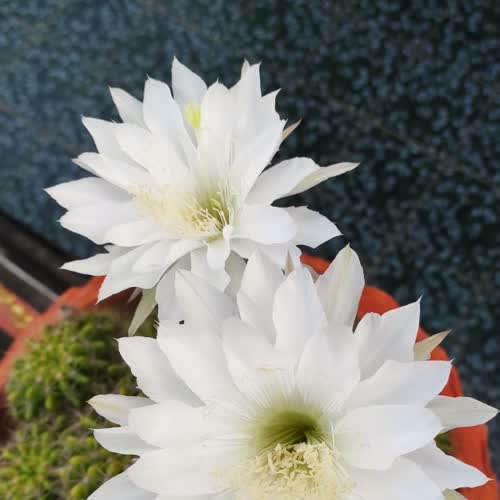 | คำอธิบาย : ดาวล้อมเดือน (Echinopsis calochlora K.Schum) วงศ์ CACTACEAE เป็นไม้ล้มลุกหลายปี จำพวกกระบองเพชร อวบน้ำ สีเขียวอ่อน มีพู (ribs) 10-12 พู สามารถแตกหน่อออกมาจากตุ่มเนินหนามได้จำนวนมาก คล้ายกับดาวที่ล้อมอยู่รอบเดือน ดอกมีขนาดใหญ่ สีขาว ก้านดอกยาว แทงออกมาตามตุ่มเนินหนาม ออกดอกช่วงฤดูร้อน มีถิ่นกำเนิดในอเมริกาใต้ |