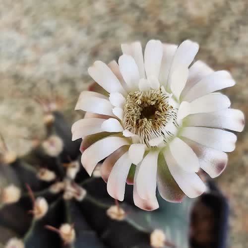 | คำอธิบาย : ยิมโนคาไลเซียม (Gymnocalycium) ชื่อสกุลมาจากภาษากรีก 2 คำ คือ Gymnos ที่แปลว่า เปลือย และ Colyx แปลว่า วงกลีบเลี้ยง เมื่อนำมารวมกันจึงเป็นกลีบเลี้ยงเปลือย (ไม่มีขน) มีถิ่นกำเนิดในทวีบอเมริกาใต้ แถบประเทศอาร์เจนตินา บราซิล โบลิเวีย อาร์เจนตินา อุรุกวัย และปารากวัย แคคตัสสกุลนี้มีราว 80 ชนิด ซึ่งมีชื่อสามัญ คือ “Chin Cactus” นิยมนำมาเลี้ยงและปรับปรุงสายพันธุ์เป็นลูกผสมทำให้แตกต่างไปจากต้นแบบเดิม เช่น ยิมโนด่าง หรือบางชนิดมีหนามยาวและใหญ่ทนต่อสภาพอากาศร้อน ดอกจะบานตอนช่วงกลางวัน และจะหุบช่วงกลางคืน จะบานประมาณ 3 – 4 วัน |