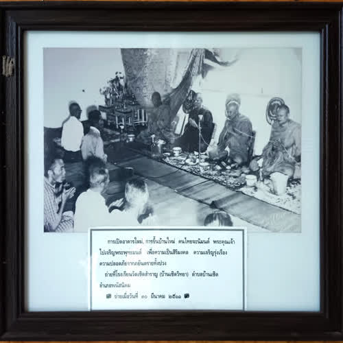 คำอธิบาย : การเปิดอาคารใหม่ การขึ้นบ้านใหม่ คนไทยจะนิมนต์ พระคุณเจ้าไปเจริญพระพุทธมนต์ เพื่อความเป็นสิริมงคล ความเจริญรุ่งเรือง ความปลอดภัยจากภยันตรายทั้งปวง ถ่ายที่โรงเรียนวัดเซิดสำราญ (บ้านเซิดวิทยา) ตำบลบ้านเซิด อำเภอพนัสนิคม ถ่ายเมื่อวันที่ 30 มีนาคม 2511 |