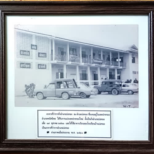 | คำอธิบาย : อาคารที่ว่าการกิ่งอำเภอบ่อทอง ณ ตำบลบ่อทอง ซึ่งเคยอยู่ในเขตปกครองอำเภอพนัสนิคม ได้รับการแบ่งเขตปกครองใหม่ ตั้งเป็นกิ่งอำเภอบ่อทอง เมื่อ 19 ตุลาคม 2521 และได้ใช้อาคารเรียนของโรงเรียนบ้านบ่อทองเป็นอาคารที่ว่าการอำเภอบ่อทอง |