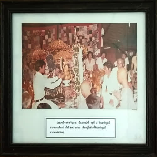 | คำอธิบาย : ประเพณีการทำขวัญนาค บ้านเกาะโพธิ์ หมู่ที่ 4 ตำบลท่าบุญมี อำเภอเกาะจันทร์ เมื่อปี พ.ศ. 2524 (เดิมอยู่ในท้องที่ตำบลท่าบุญมี อำเภอพนัสนิคม) |