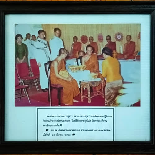 | คำอธิบาย : สมเด็จพระเทพรัตนราชสุดาฯ สยามบรมราชกุมารี ทรงมีพระราชปฏิสันถารกับท่านเจ้าอาวาสวัดหนองขยาด ในพิธีตัดหวายลูกนิมิต โดยพระองค์ท่านทรงเป็นประธานในพิธี |