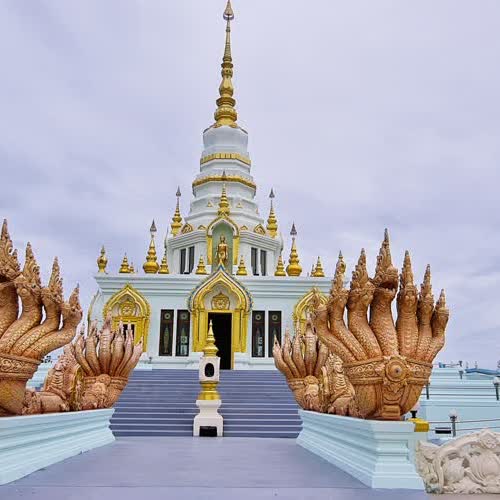| คำอธิบาย : มหาเจดีย์เกตุแก้วจุฬามณีอาสนสุขมหาวิหาร ตั้งอยู่ ณ วัดแสนสุขสุทธิวราราม ต.แสนสุข อ.เมือง จ.ชลบุรี ด้านหน้ามีประติมากรรมปูนปั้นรูปพญานาค สวยงาม ตระการตา |
