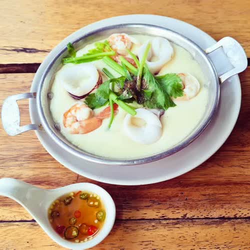 | คำอธิบาย : ไข่ตุ๋นทะเลกับน้ำปลาพริก ร้านพี่บิ๊กกุ้งเผา อาหารตามสั่ง จ.ชลบุรี |