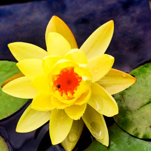 | คำอธิบาย : ดอกบัวสีเหลือง ในมุมมองด้านข้างและด้านบน |