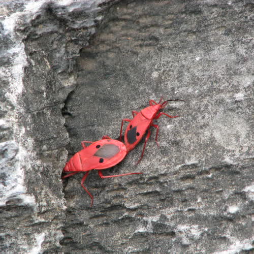 คำอธิบาย : มวนแดงนุ่นสองตัว บนก้อนหิน |