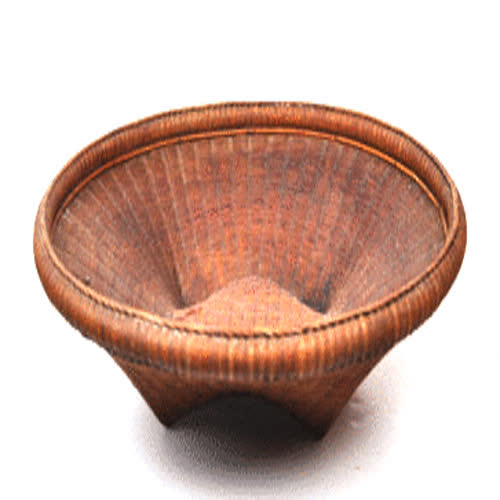 | คำอธิบาย : เป็นกระจาดไม้ไผ่สานตอกละเอียดกลาง ขนาดกว้าง ๔๑ ซม. สำหรับใส่พืชผักผลไม้ และสิ่งของต่างๆ |